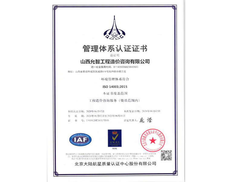 管理體系認(rèn)證證書1
